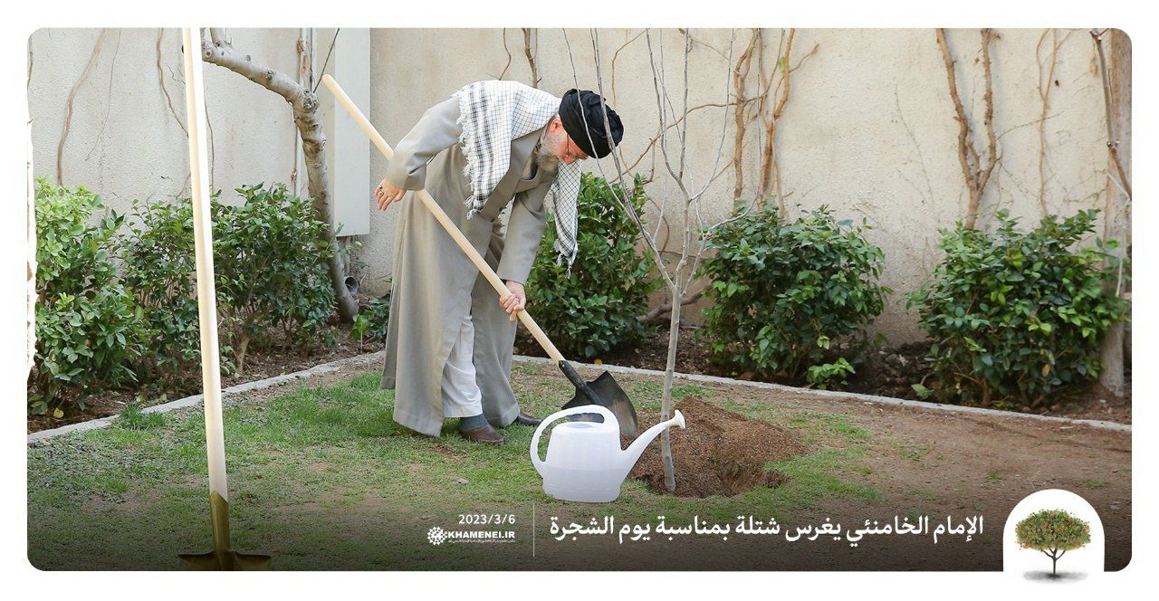 روز دوشنبه حضرت آیت الله خامنه ای رهبر معظم انقلاب اسلامی یک نهال درخت را بمناسبت روز درختکاری کاشتند .